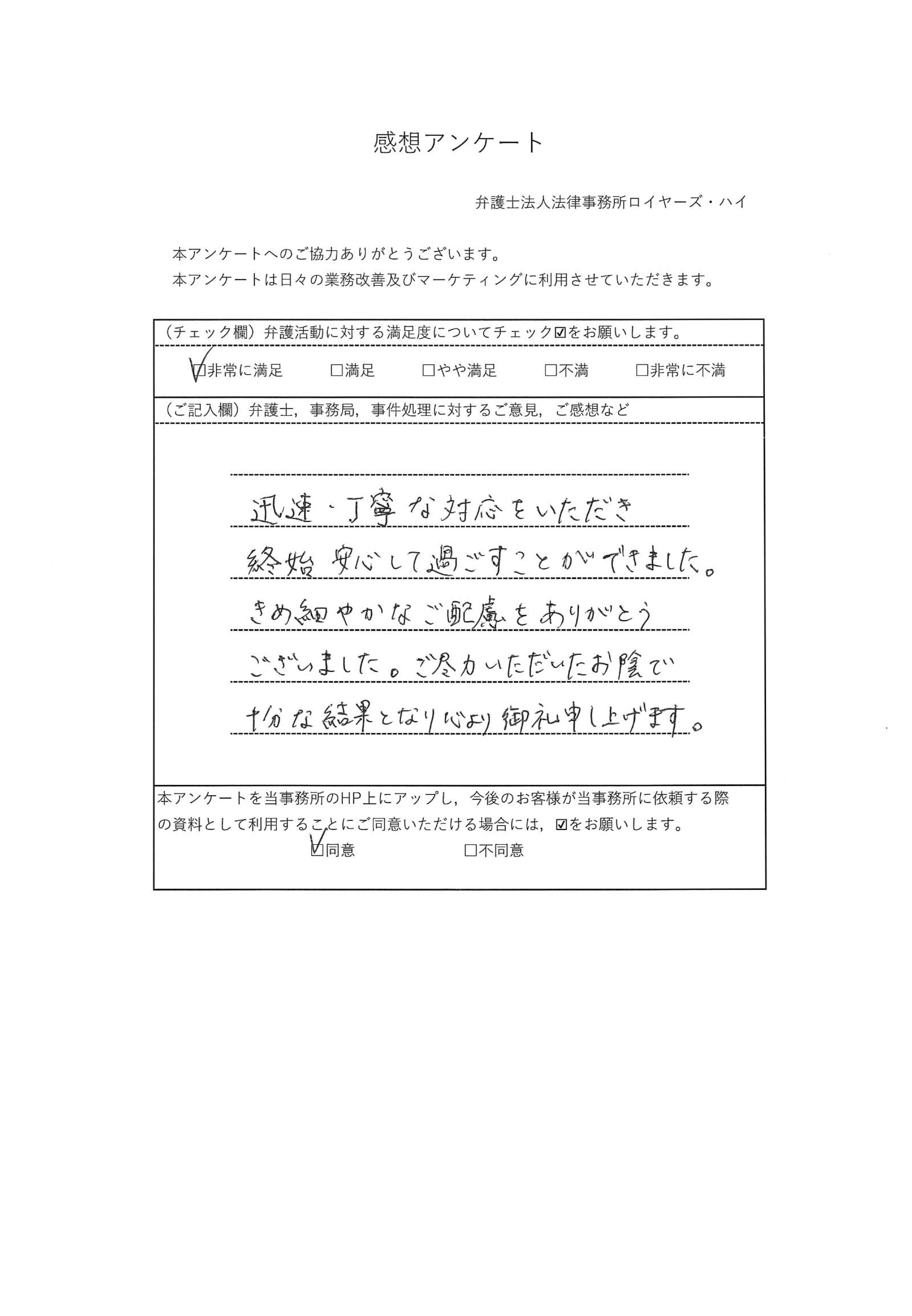 きめ細やかなご配慮ありがとうございました。ご尽力いただいたお陰で十分な結果となり